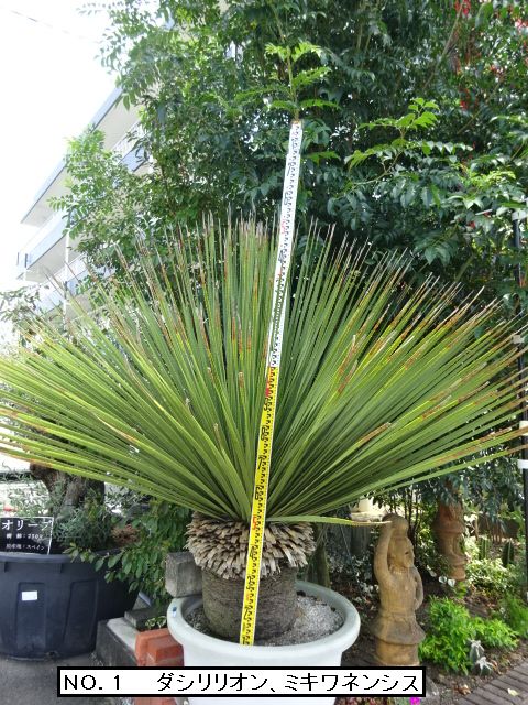 みずほ造園 株式会社 タ ダシリリオン 一 般 名. ダシリリオン 属 名 ダシリリオン属 科 名 リュウゼツラン科 原 産 地 メキシコ南部 葉は長さ1.0m以上、幅約1.5㎝で線形で弓形に成ります 葉の表面は、小さな紙ヤスリ状の棘が生えます